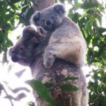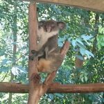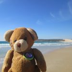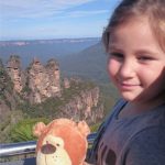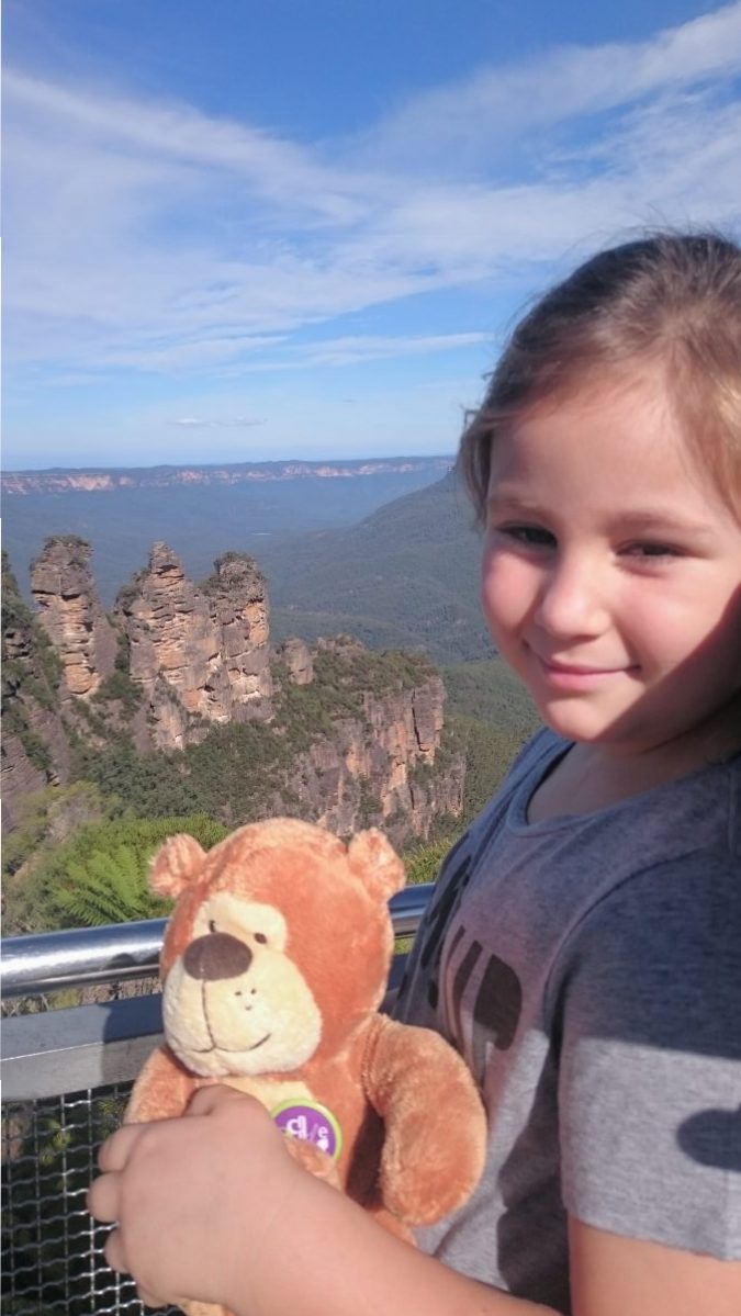 In Australia Wojtek visited the Blue Mountains with the seven-year-old Lara. The three gigantic rocks in the background are called the Three Sisters. Legend has it that the sisters were turned to stone a long time ago. Wojtek then went to stay with Lara’s grandma, Lucyna Sarnecki, and met his Australian cousins, the koala bears.