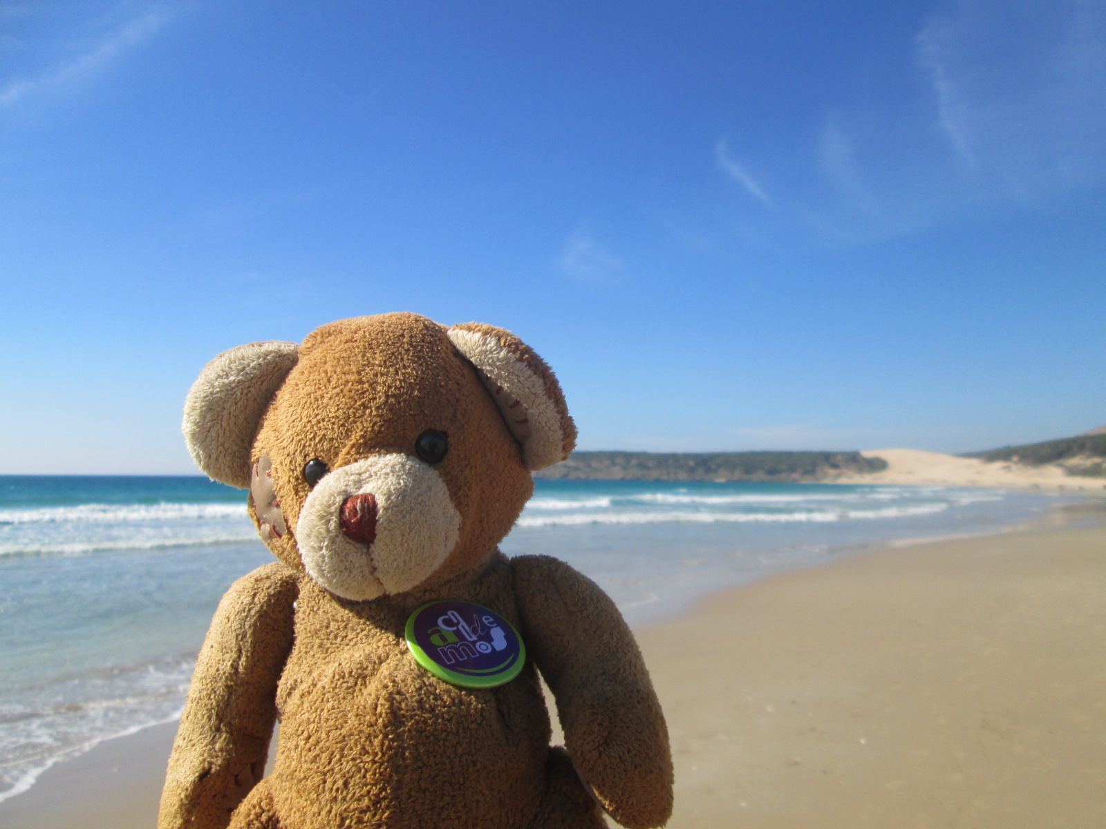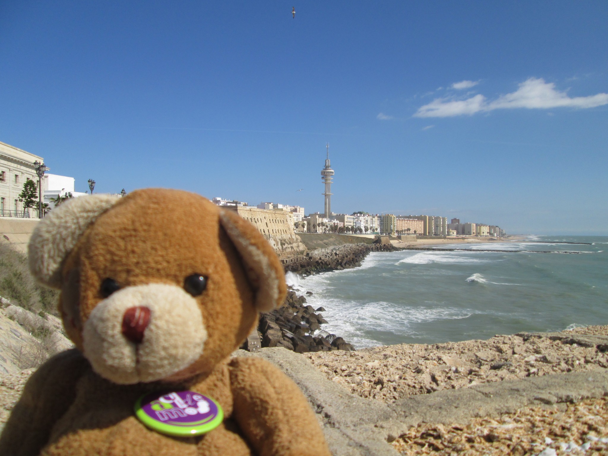 Wojtek arrived to Algeciras (Andalusia), southern Spain, the city where Sonia Prados, his host, was born. He stayed there for a few weeks with her family. Then he went to Bologna Beach in Tarifa, the most beautiful beach in Spain, with fine sand and crystal clear water. He rested after the long journey, walked along the beach, sunbathed and swam a little although the water was still much too cold. Then he came to Cadiz, where Sonia lives and works now. There he walks a lot, eats fried fish, and accompanies Sonia to work.