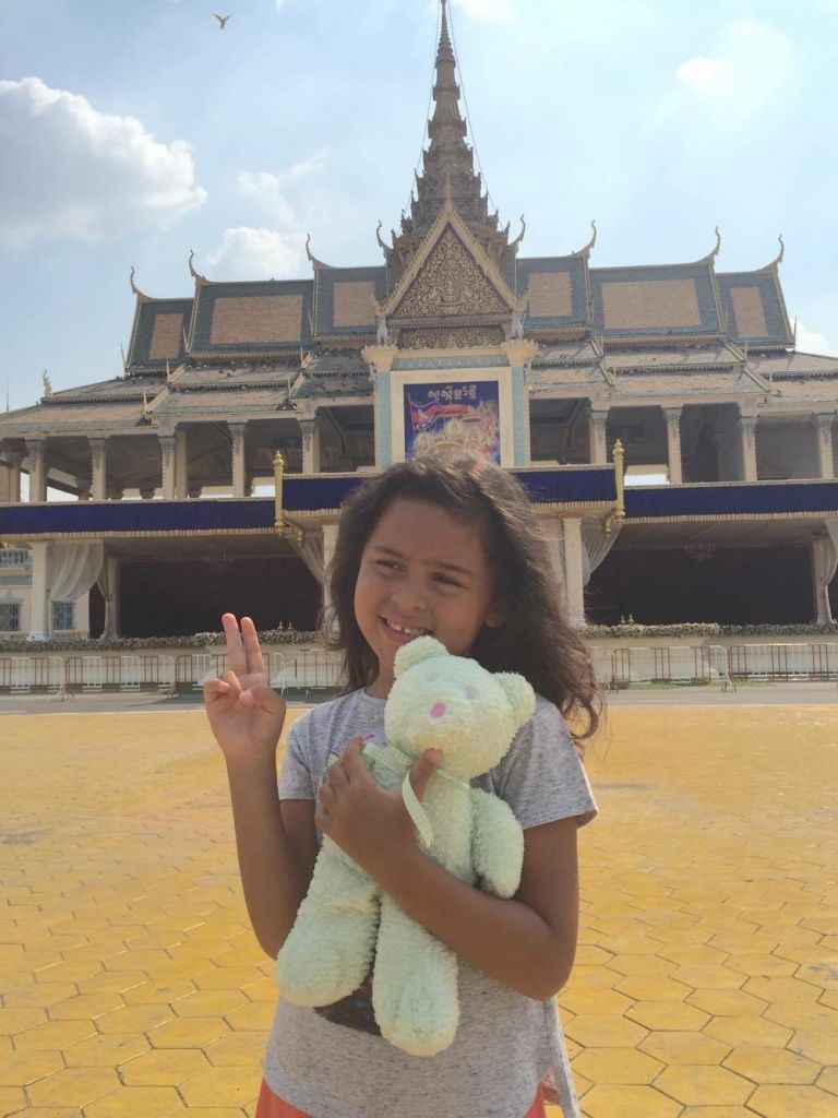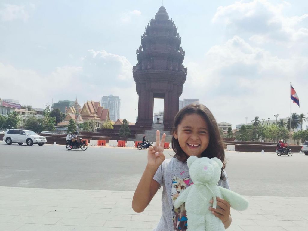 These amazing photos were taken in Phnom Penh, the capital of Cambodia. Sasha, a cousin of Yaroslav and Aksynya Knyazkov, took her new friend to the Royal Palace and the Independence Monument in the heart of the city.