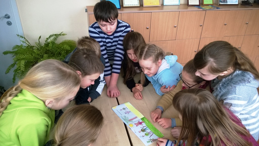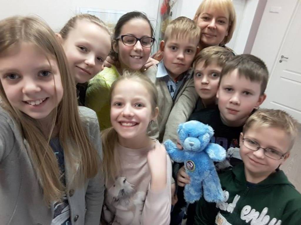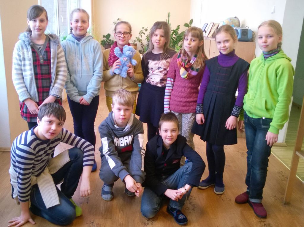 Ms Irena Mateliene, a teacher at Rokiškis Primary School-Kindergarten ,,Ąžuoliukas’”, took Wojtek to meet her students who were greatly interested in the bear’s story and loved the comic books they received from Academos students. Rokiškis is a small town in the western part of Lithuania.