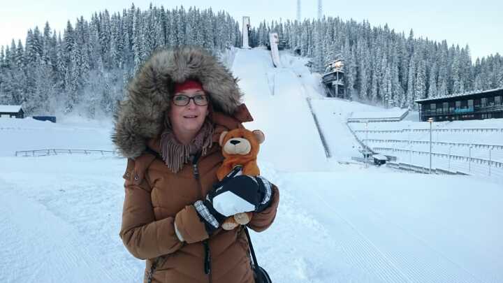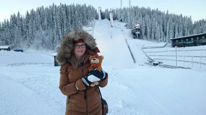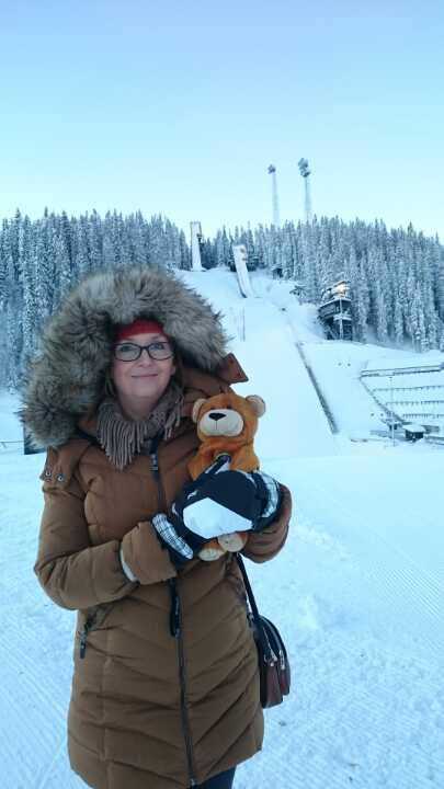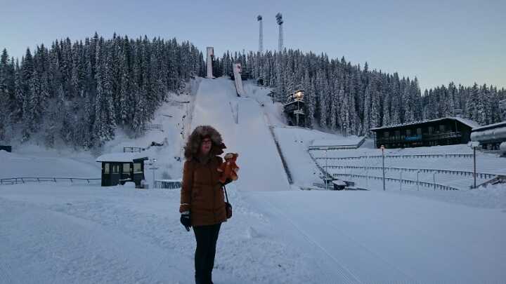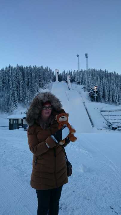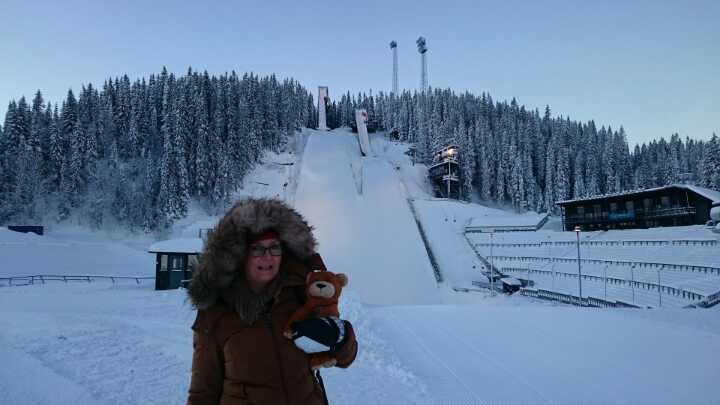 Wojtek is in Trondheim, Norway. Ewa Stawiarska, his new caregiver, took Wojtek to see a very famous ski jumping hill called Granåsen where in 2013 Kamil Stoch claimed his seventh World Cup victory.