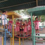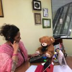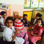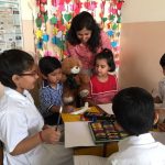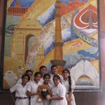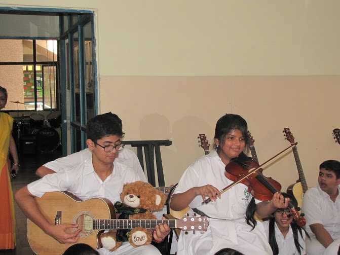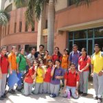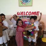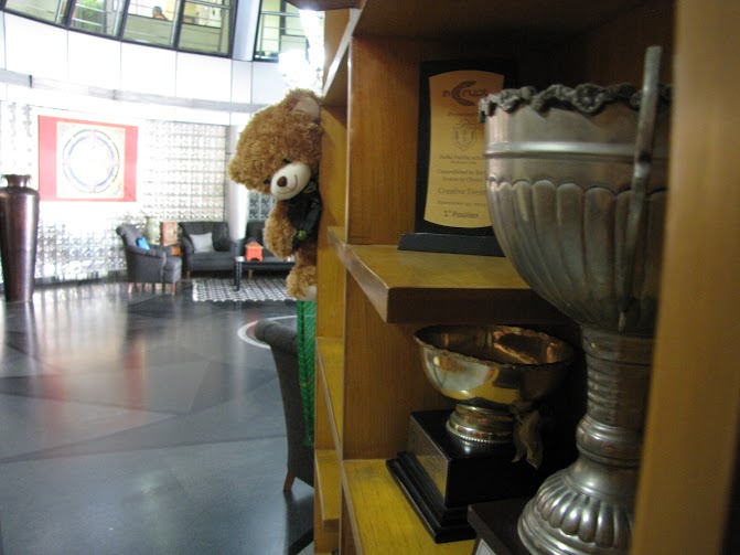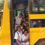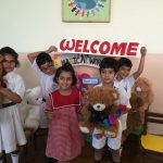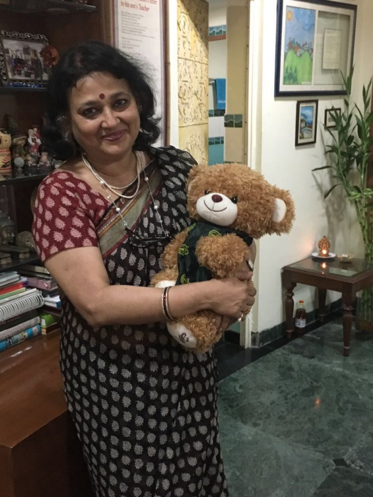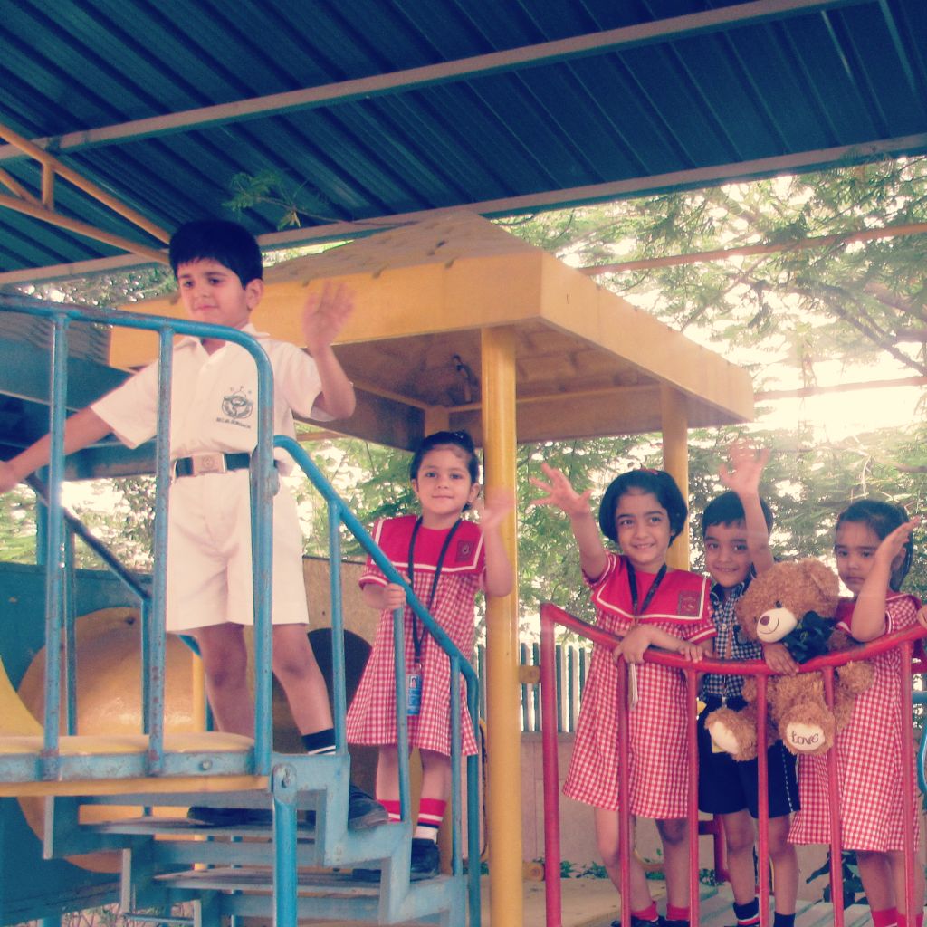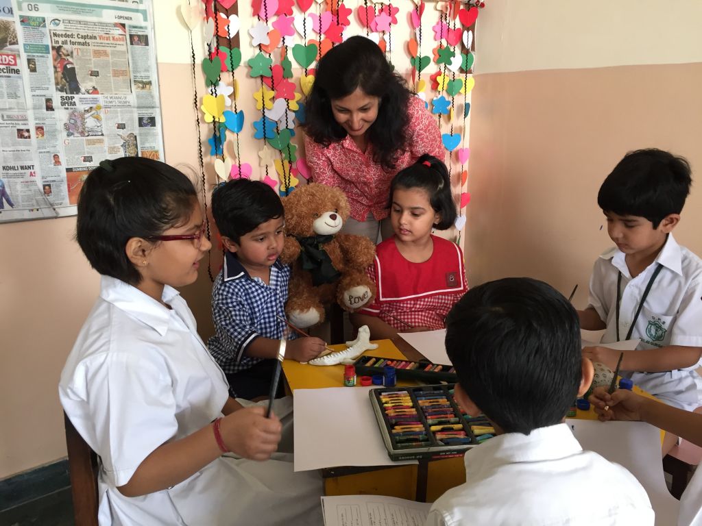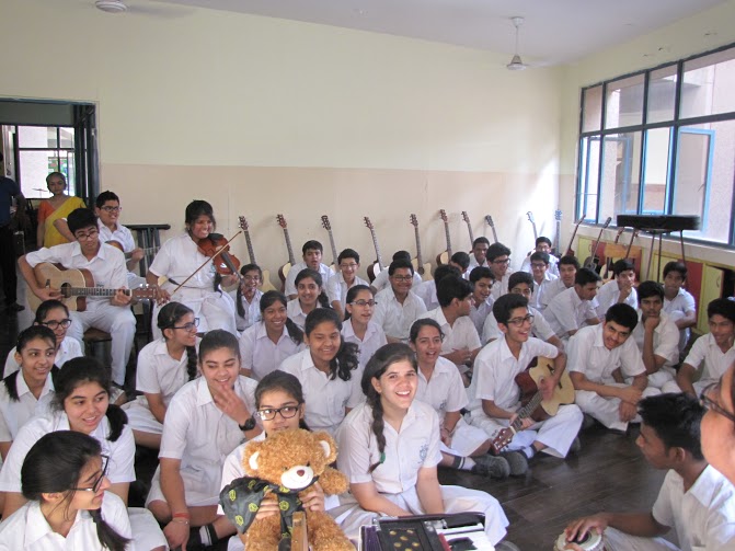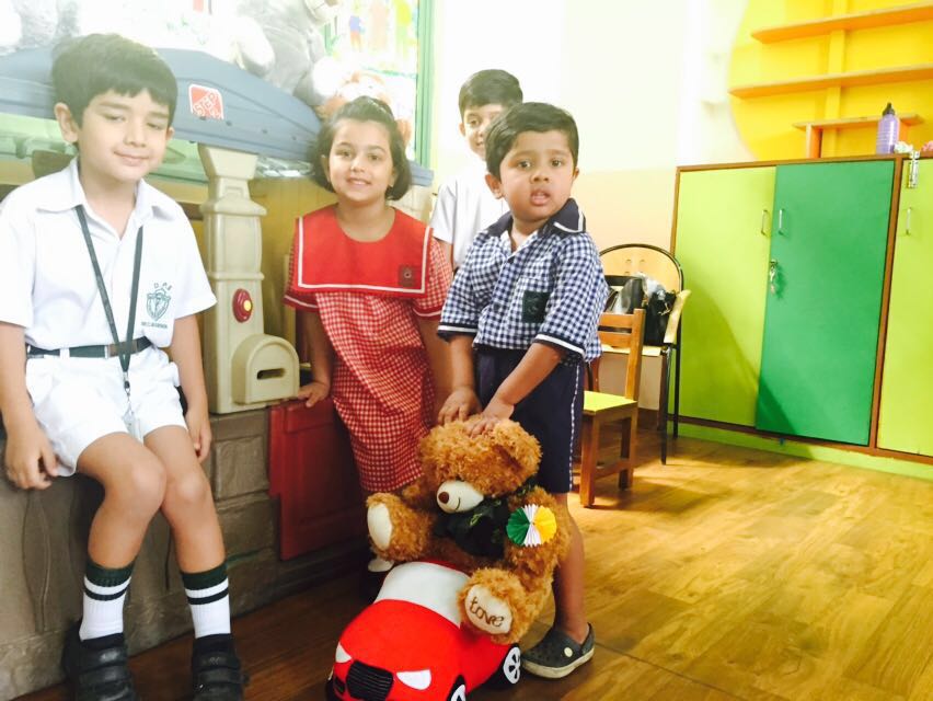 Wojtek spends a day at Delhi Public School, Gurgaon, India, and is wearing the school scarf. With to Ms Mamta Kumar, he went to the Infant, Middle and Senior Wings of the school and made a lot of new friends. He even got to travel on the yellow school bus.