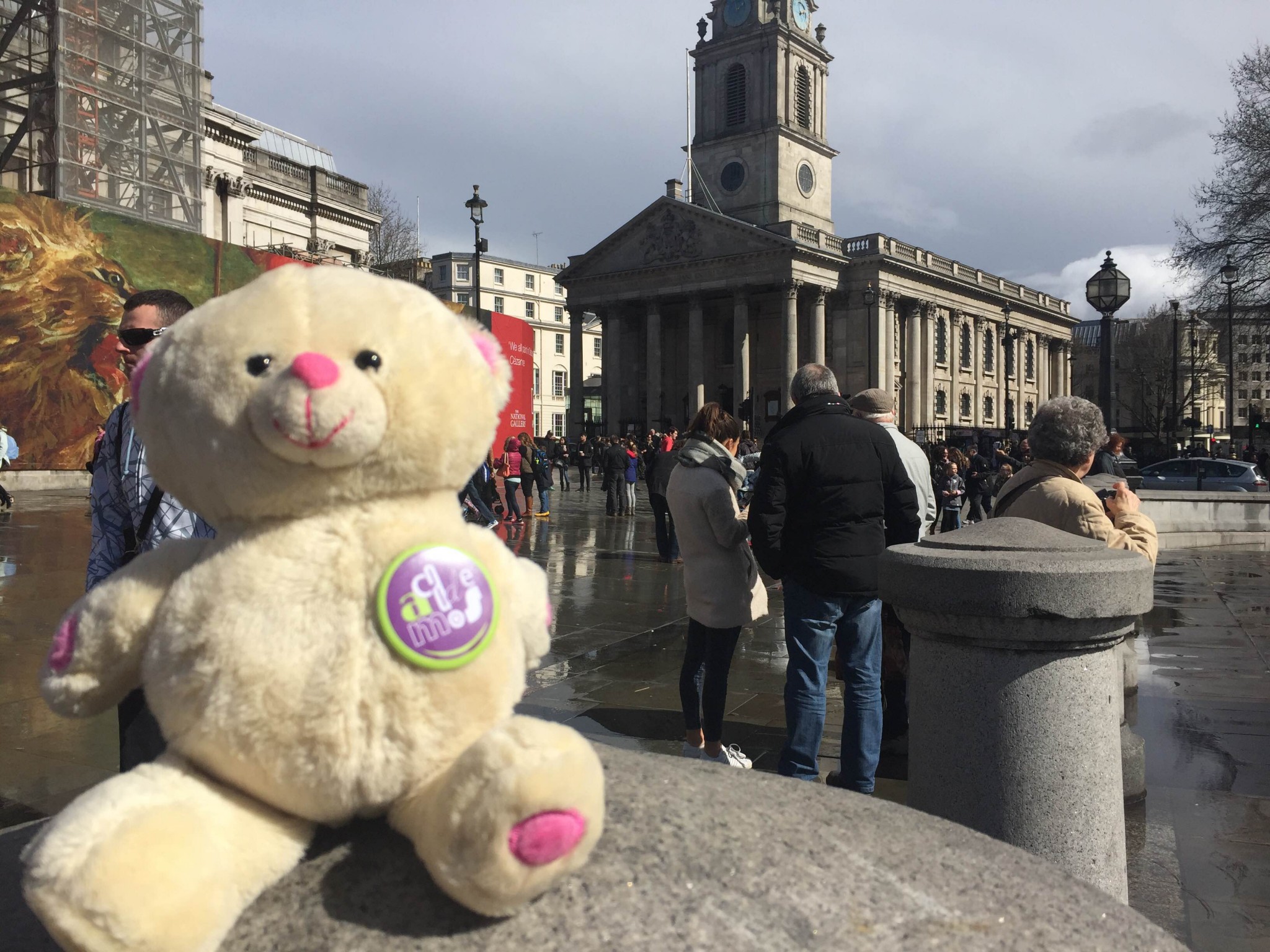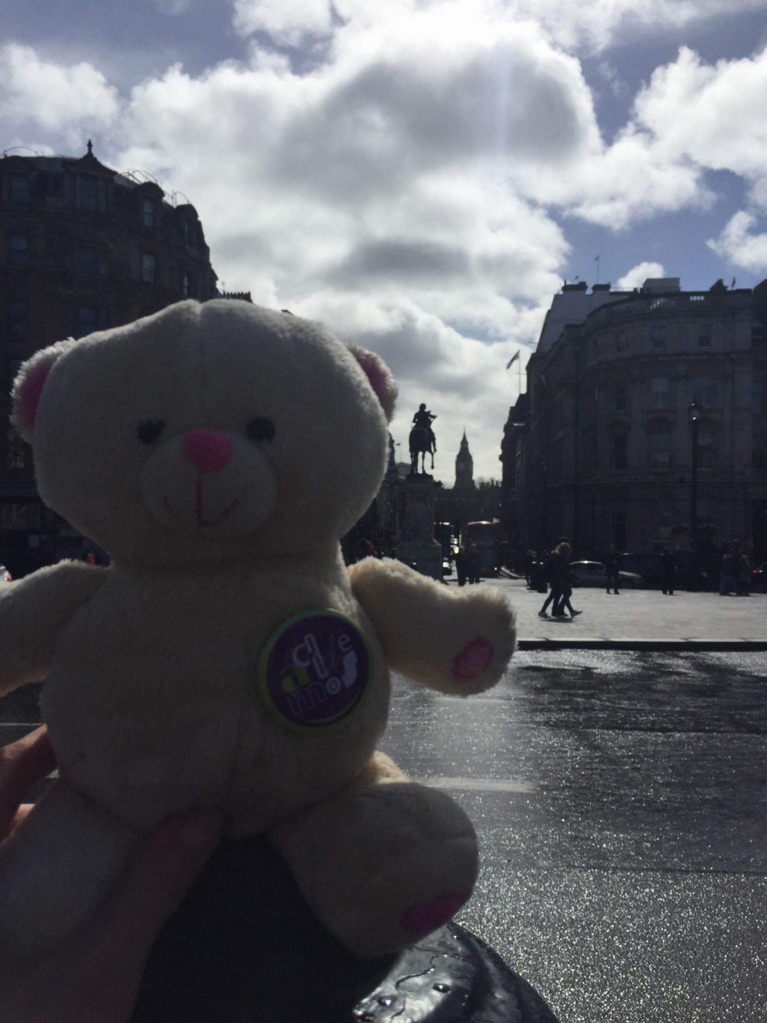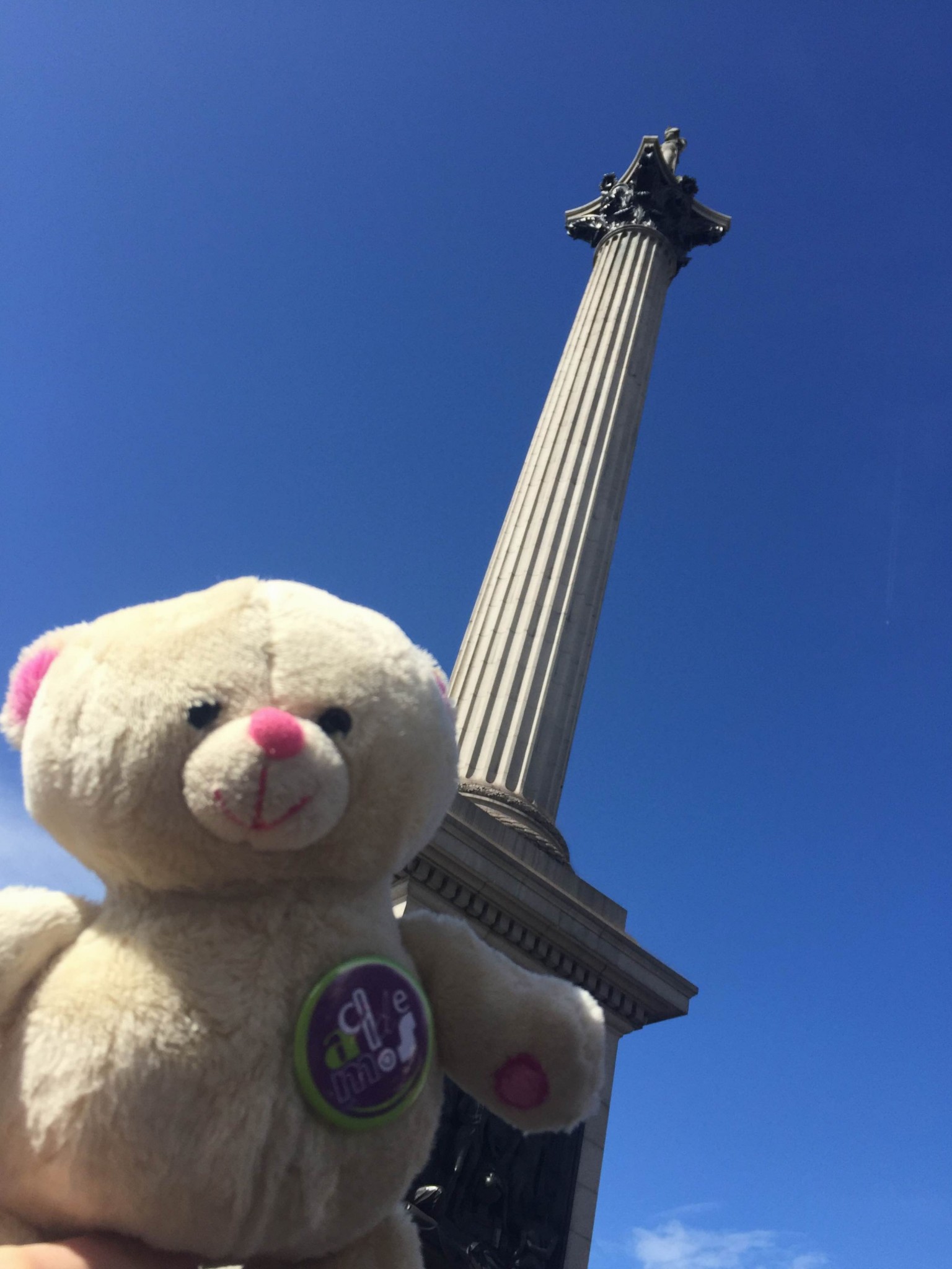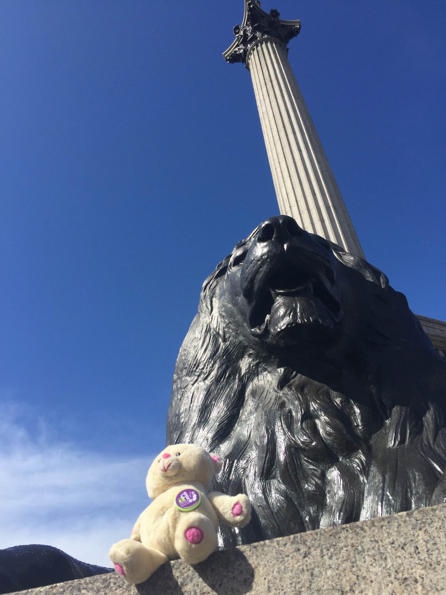 Wojtek lives with Agata Sadza, who works at one of London universities. She took him for a night stroll to the Piccadilly Circus. The next day they visited the National Gallery and Trafalgar Square. Wojtek showed remarkable bravery when he took a selfie with the lions at the foot of Nelson’s Column.