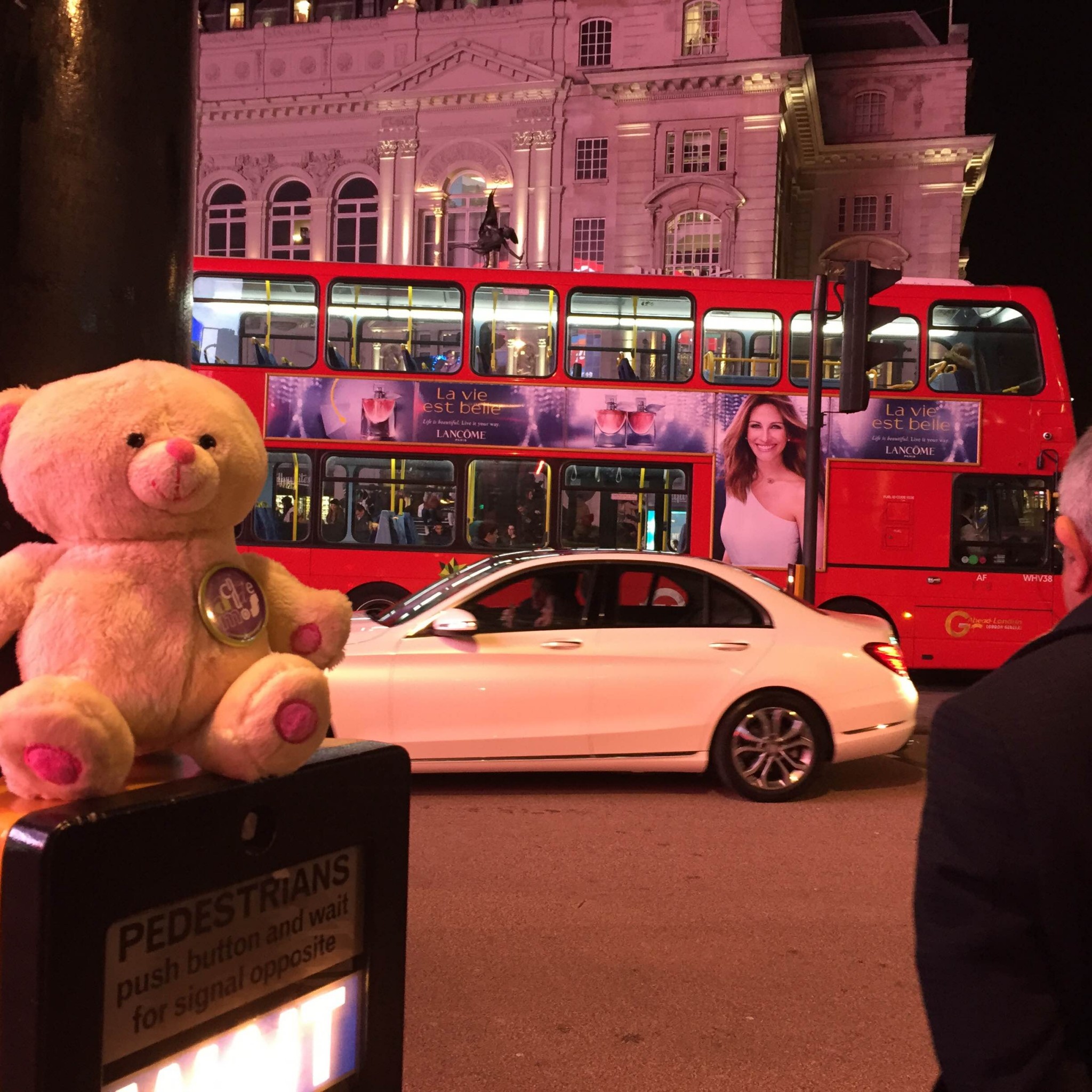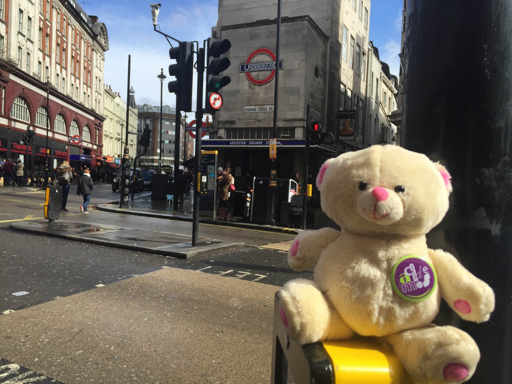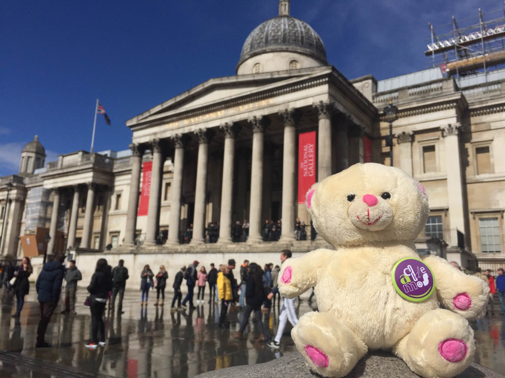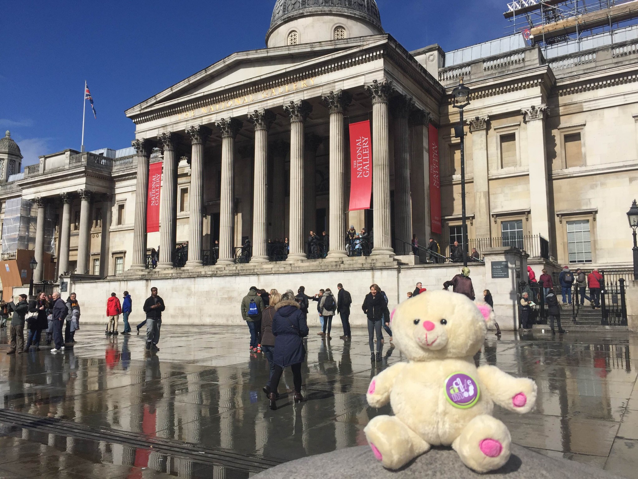 Wojtek lives with Agata Sadza, who works at one of London universities. She took him for a night stroll to the Piccadilly Circus. The next day they visited the National Gallery and Trafalgar Square. Wojtek showed remarkable bravery when he took a selfie with the lions at the foot of Nelson’s Column.