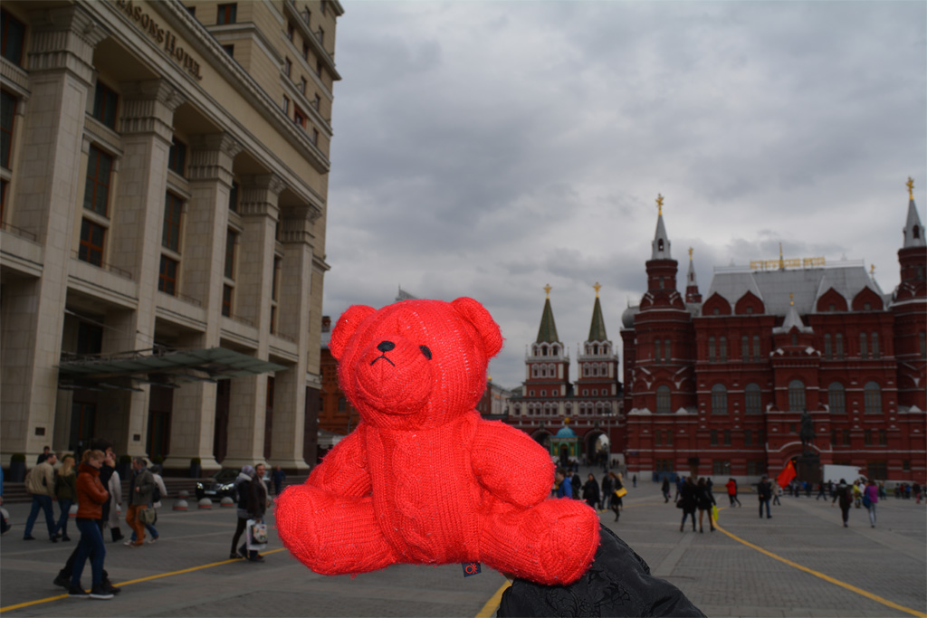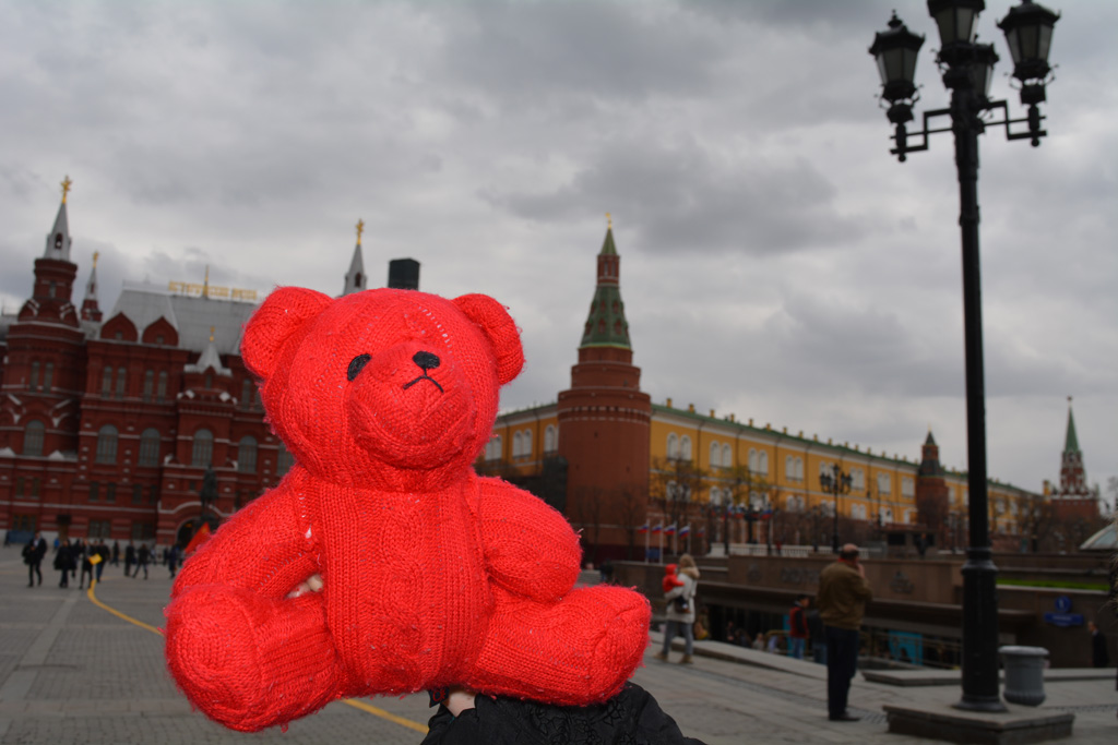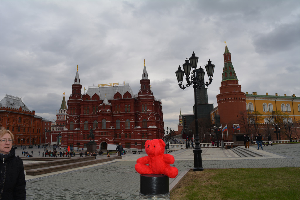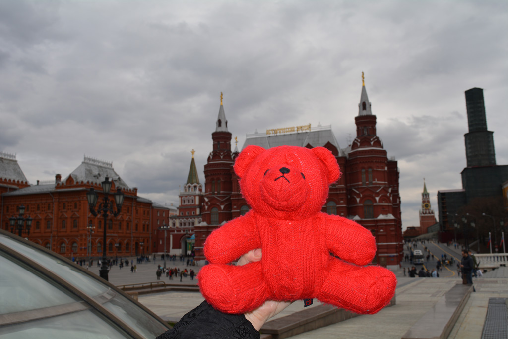 We sent Wojtek to Moscow, Russia to live with Yaroslav and Aksynya Knyazkov’s grandparents. Here is their grandma with Wojtek in the Red Square.