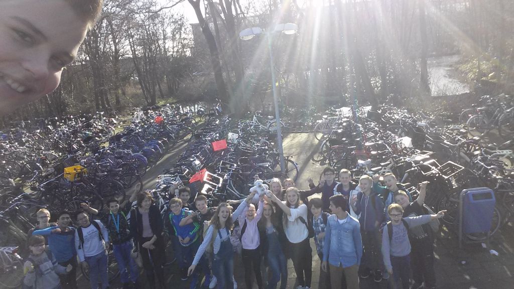 Wojtek stays in a high school in Zaandam, the Netherlands. The photo was sent to us by Mariët van den Berg. There are a lot of bicycles in front of the school.